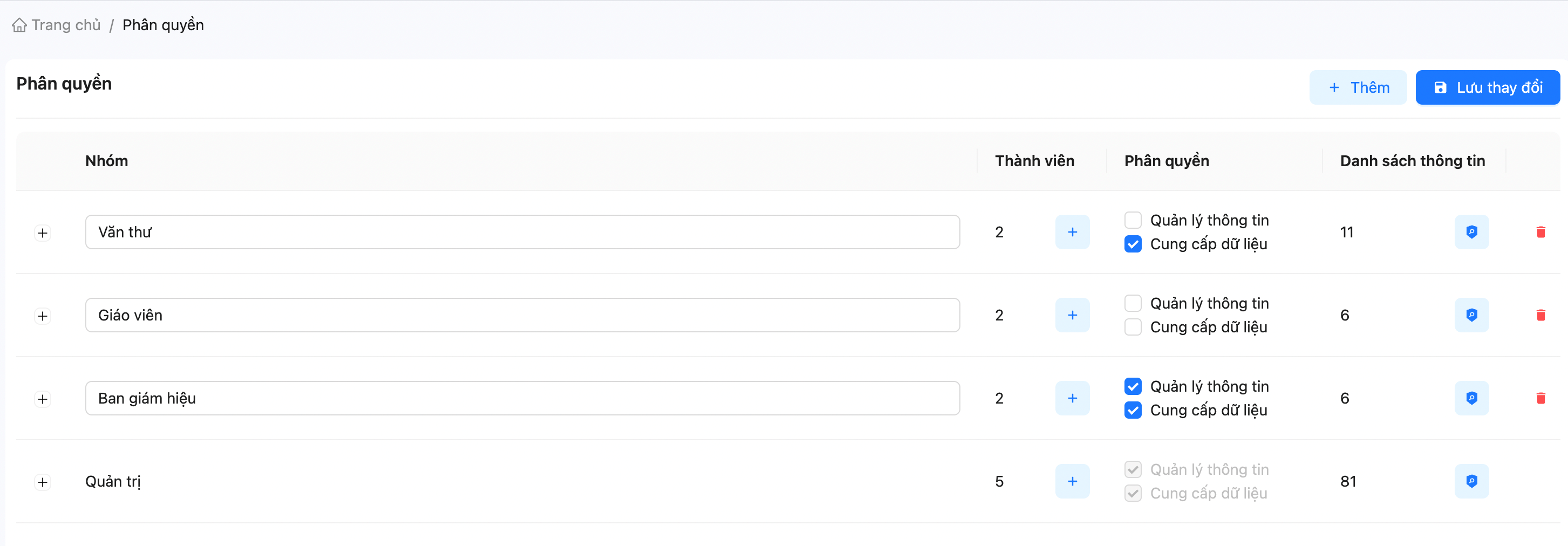 Bước 2: Chọn vào các thông phân quyền để sửa trực tiếp